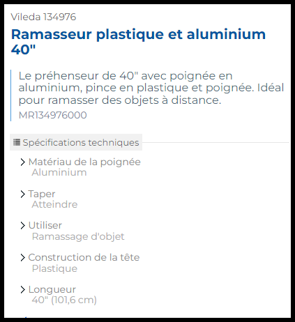 MA-134976 PINCE RAMASSE-DÉCHÊTS ''NIPPER'' 40''